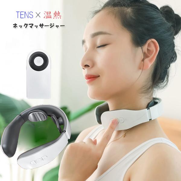 ネックマッサージャー 簡単操作 マッサージ機 マッサージ器 首 肩 温熱 低周波パルス搭載 TENS HEAT 健康 グッズ 軽量 USB充電式 リモコン操作の製品特徴