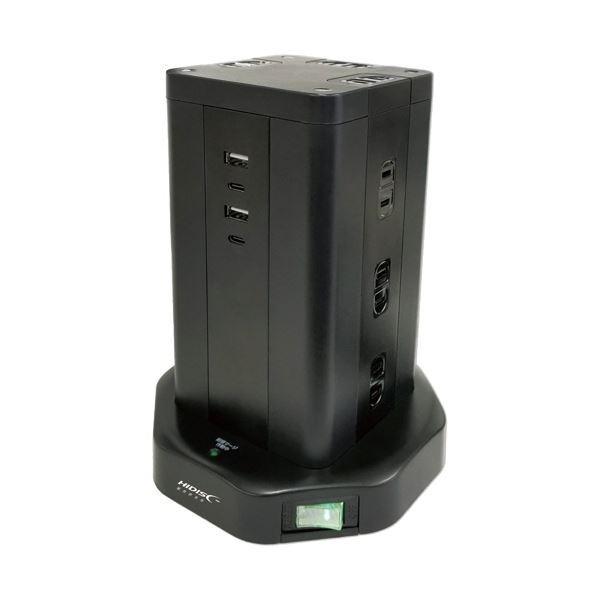 ハイディスク タワー型USB付電源タップAC差込口:12個口 USBポート数:4ポート HD-AC12C2U2BK 1個の製品特徴